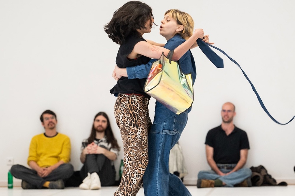 Sur scène, la chorégraphe Emma Saba, accompagnée de Jeanne Pâris au chant et à la basse électrique, détourne les livrets originaux pour leur ouvrir un nouveau terrain de jeu queer et féministe.